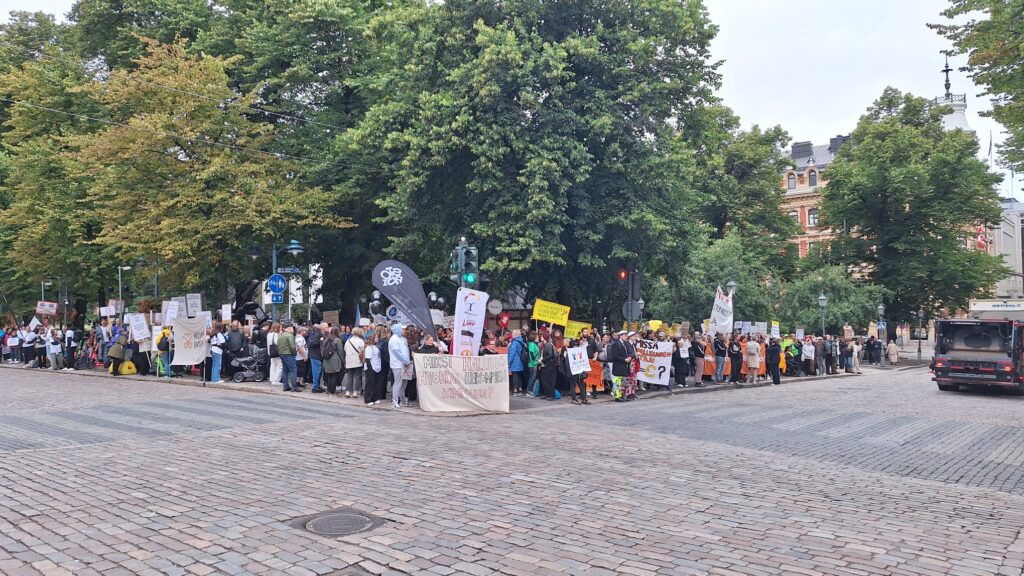 Hükümetin 2026 yılı bütçesinde planlanan 1 milyar euroluk kesintiler kamuoyunda tepkiye yol açtı. Binlerce kişi Helsinki’nin Esplanadi Parkı’nda toplanarak ellerindeki pankartlarla hükümetin ekonomi politikalarını protesto etti ve “kesintilere dur” çağrısı yaptı.
